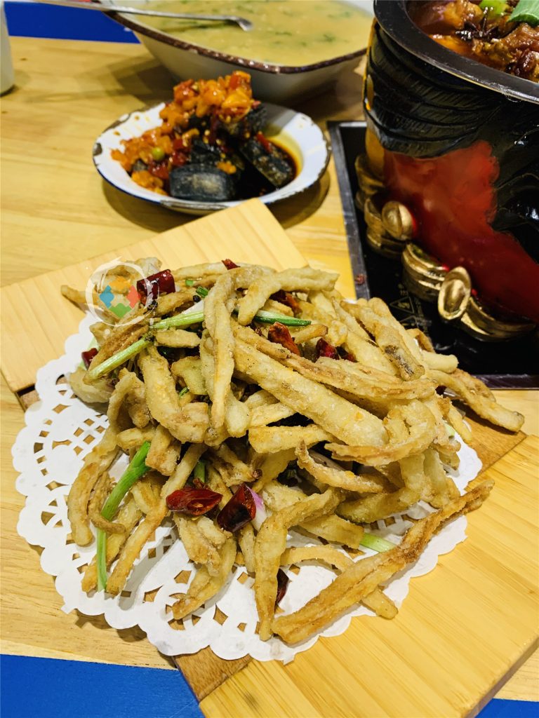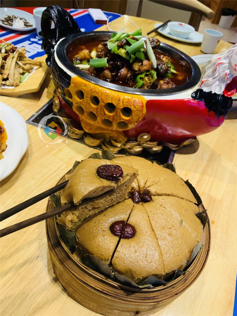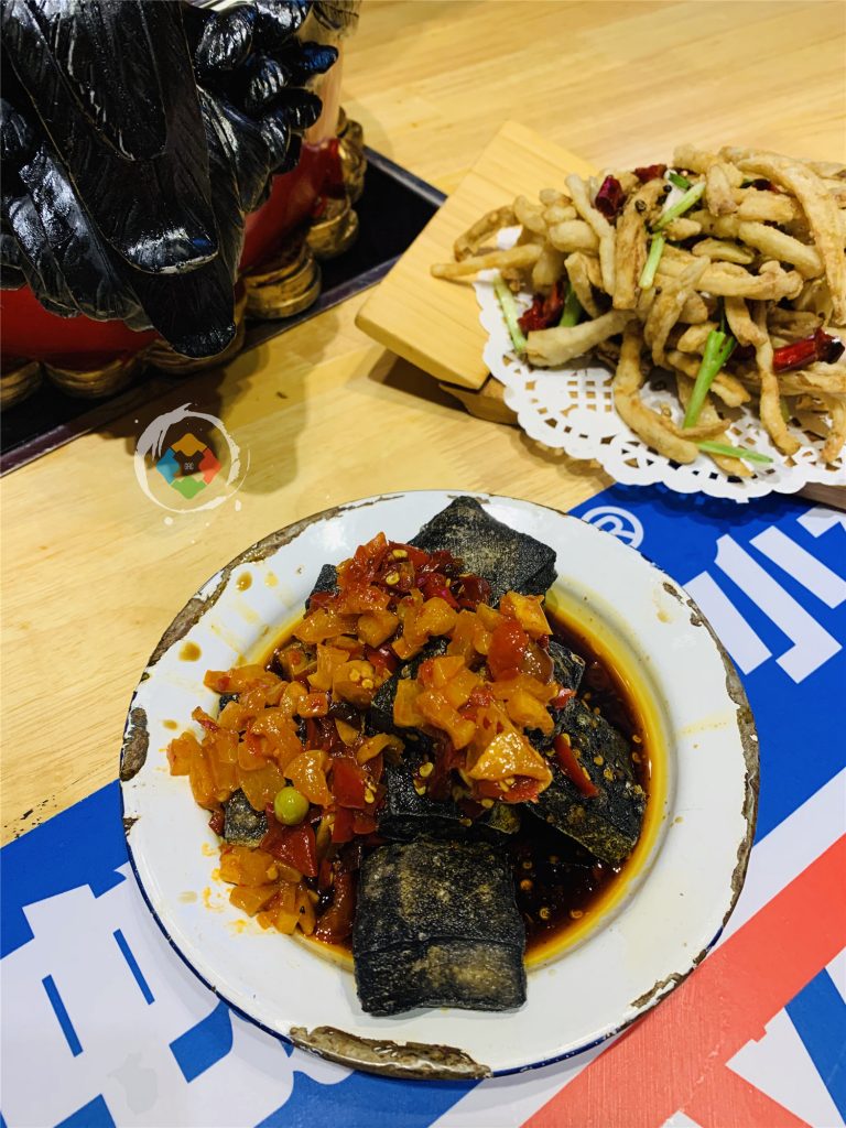 接着,就上了几个小菜:臭豆腐、炒土豆、炸藕和红糖发糕。