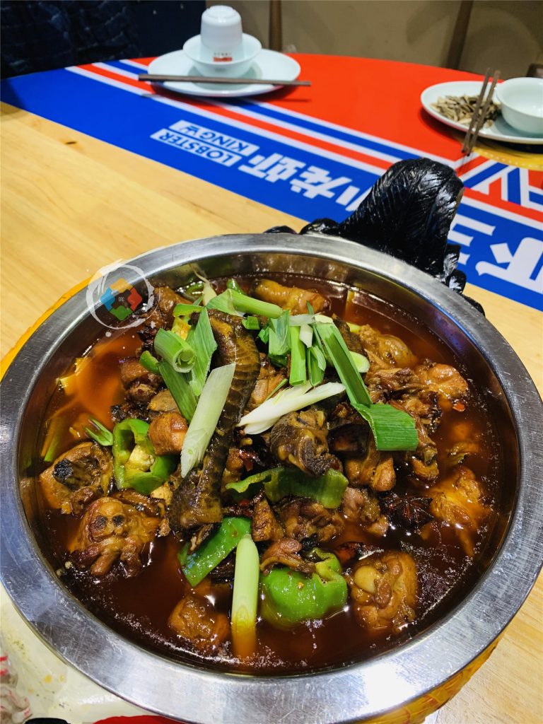 上菜非常快,从点菜到上桌,大概只有10分钟,最先上来的是一锅鸡,看到这锅鸡,游品的脑海里只剩下一个大大的问号——不是吃小龙虾吗,怎么还有鸡?
