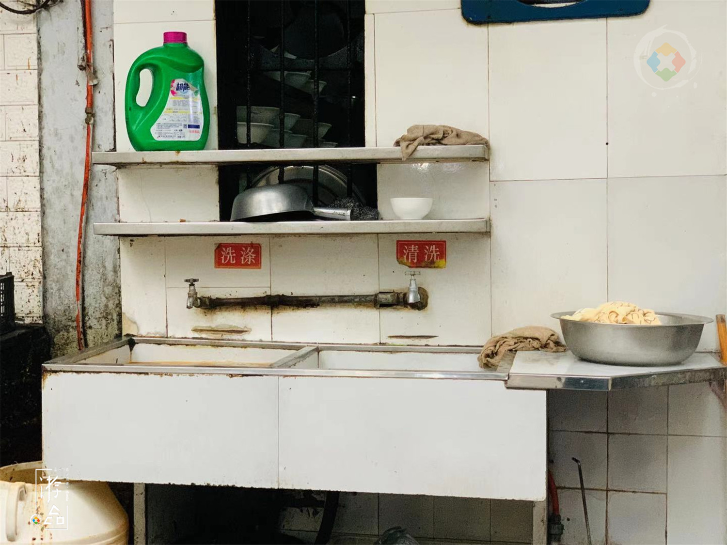 无名面庄的店铺面积不大,大致只有十来平米,洗碗水槽在店铺外面,对着大街,是重庆老房子的特色。