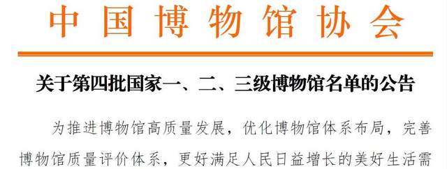 近日,中国博物馆协会发布公告,正式公布了第四批国家级博物馆名单,其中包括了一、二、三这几个不同的等级。