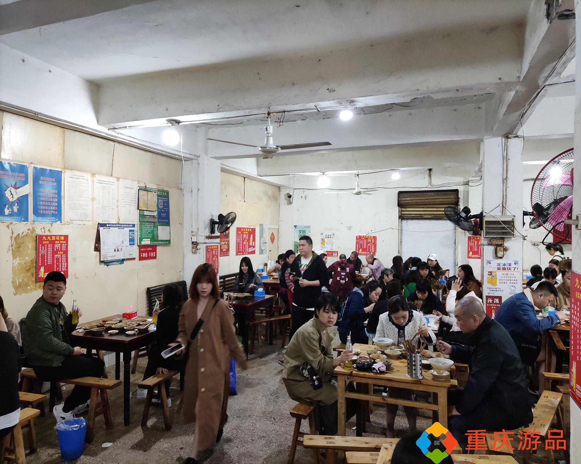 以前,来这吃饭的绝大多数是码头挑货的棒棒。但随着经济的发展,棒棒这个职业也开始没落。到了后来不知怎么的就被明星带火。九九豆花也就成为了网红店,不少外地人前来打卡。