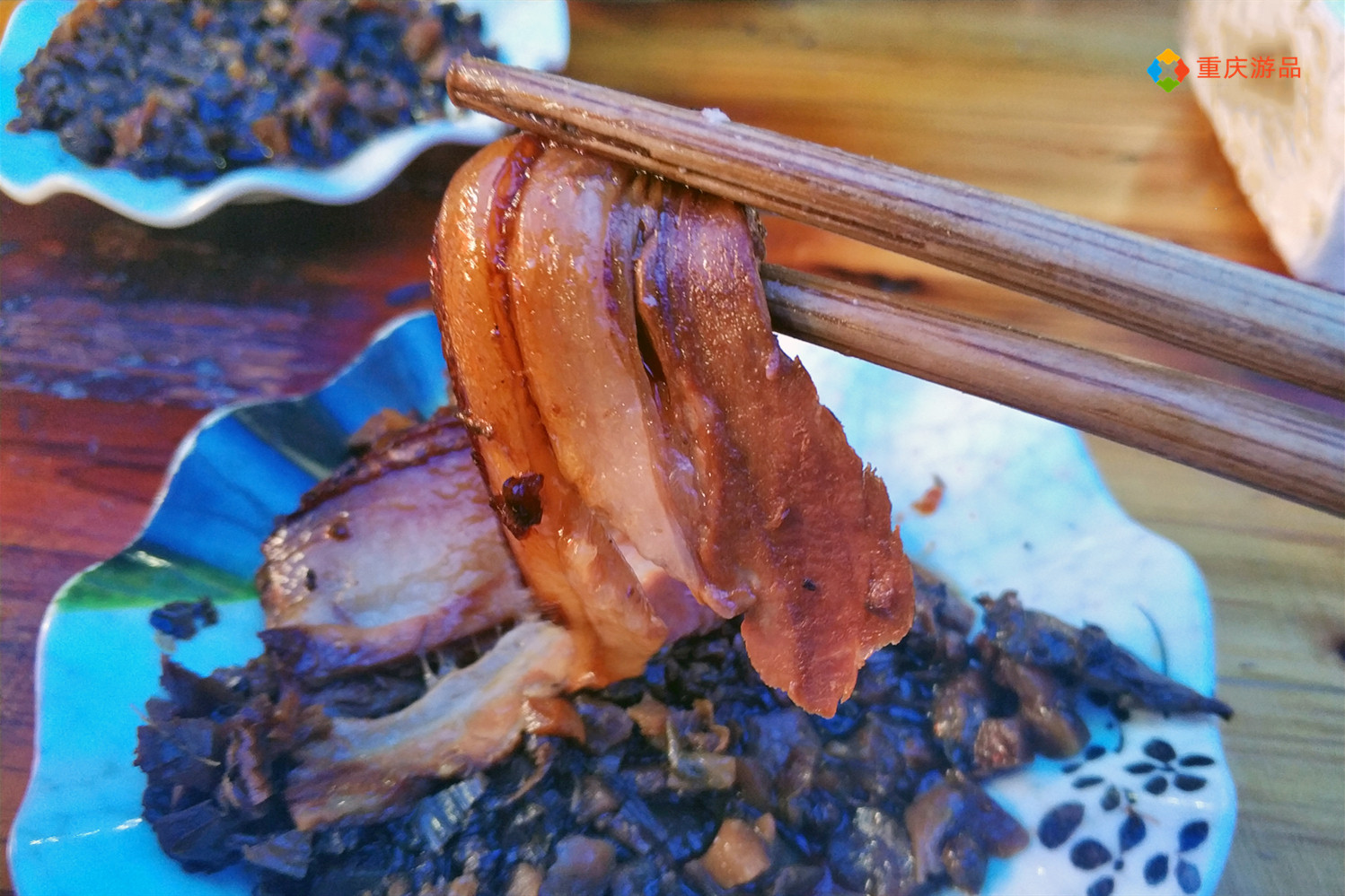 烧白,有的地方也叫扣肉,但是游品更喜欢咱们川渝地区的叫法,有一种莫名的亲切感。看着肥瘦相间的猪肉,整齐地码放在碗里,表层的皮,经过特殊方法处理后变成了深褐色,底部是最有特色的宜宾芽菜。