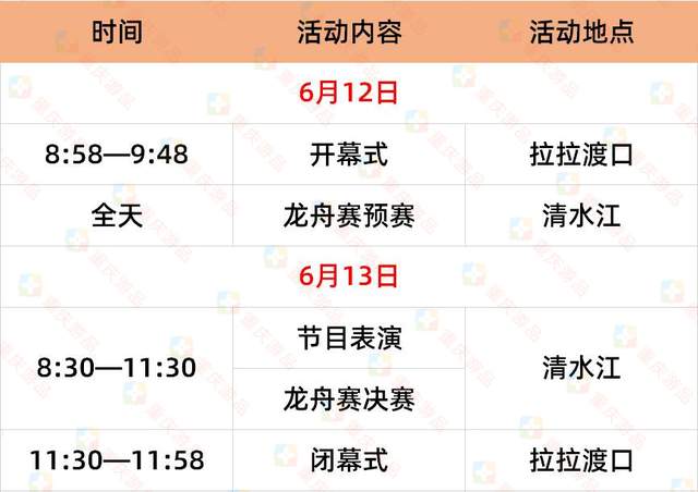 龙舟赛将在铜梁区安居古城涪江水域范围进行,具体的时间场次安排如下所示: