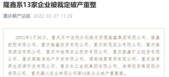 你们怎么看待重庆隆鑫集团及其相关子公司破产重整呢?欢迎留言讨论。