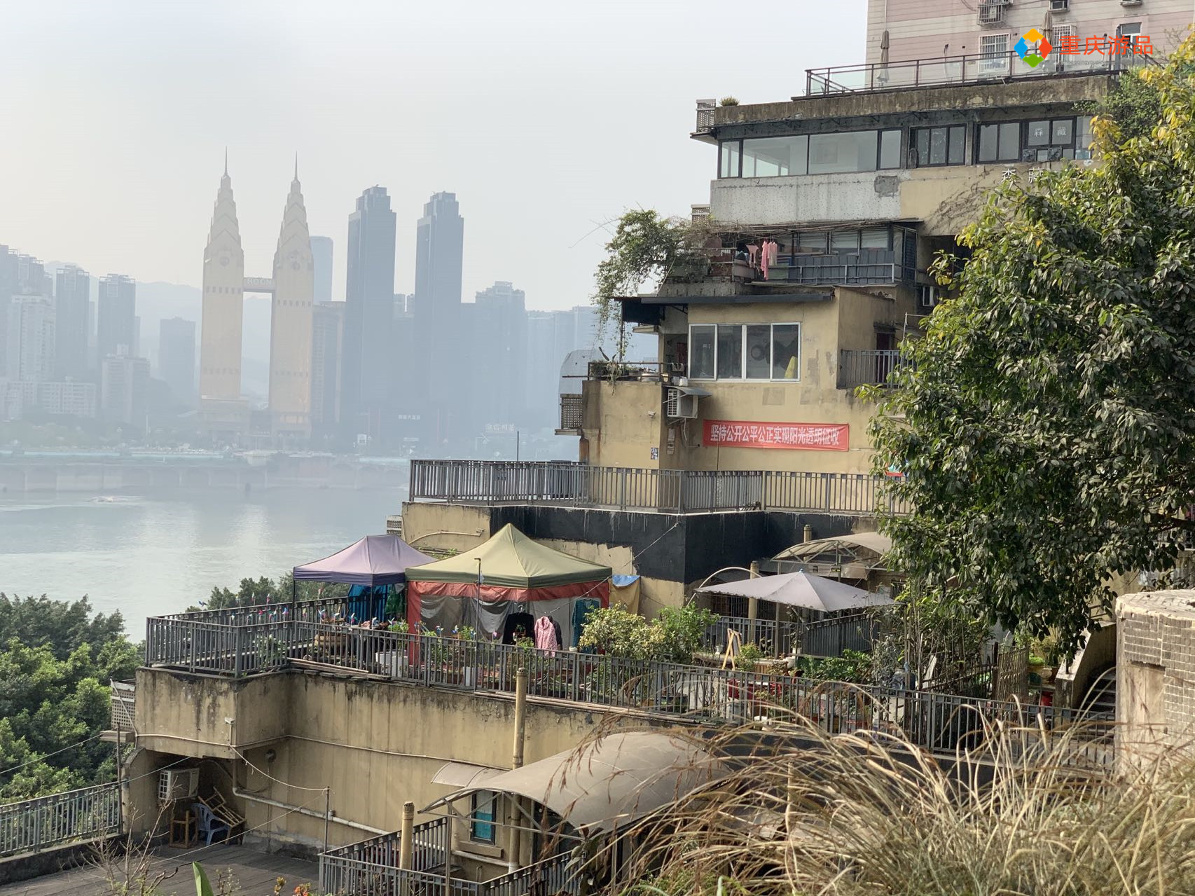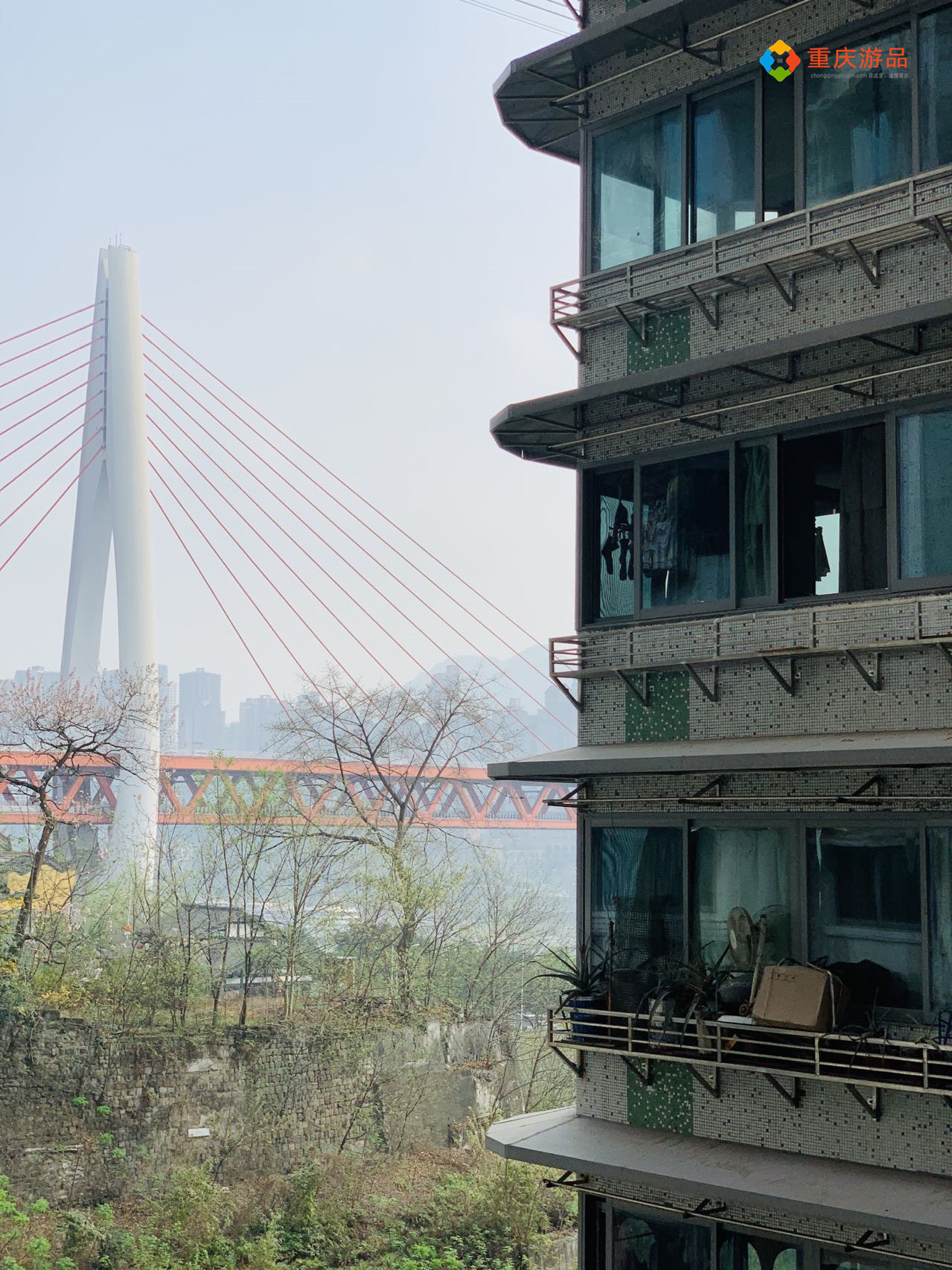 从白象居的正门进入,就来到了这个小区的15层,通过走道的窗台,可以看到东水门大桥、重庆来福士和长江索道,许多游客在这里拍照打卡。