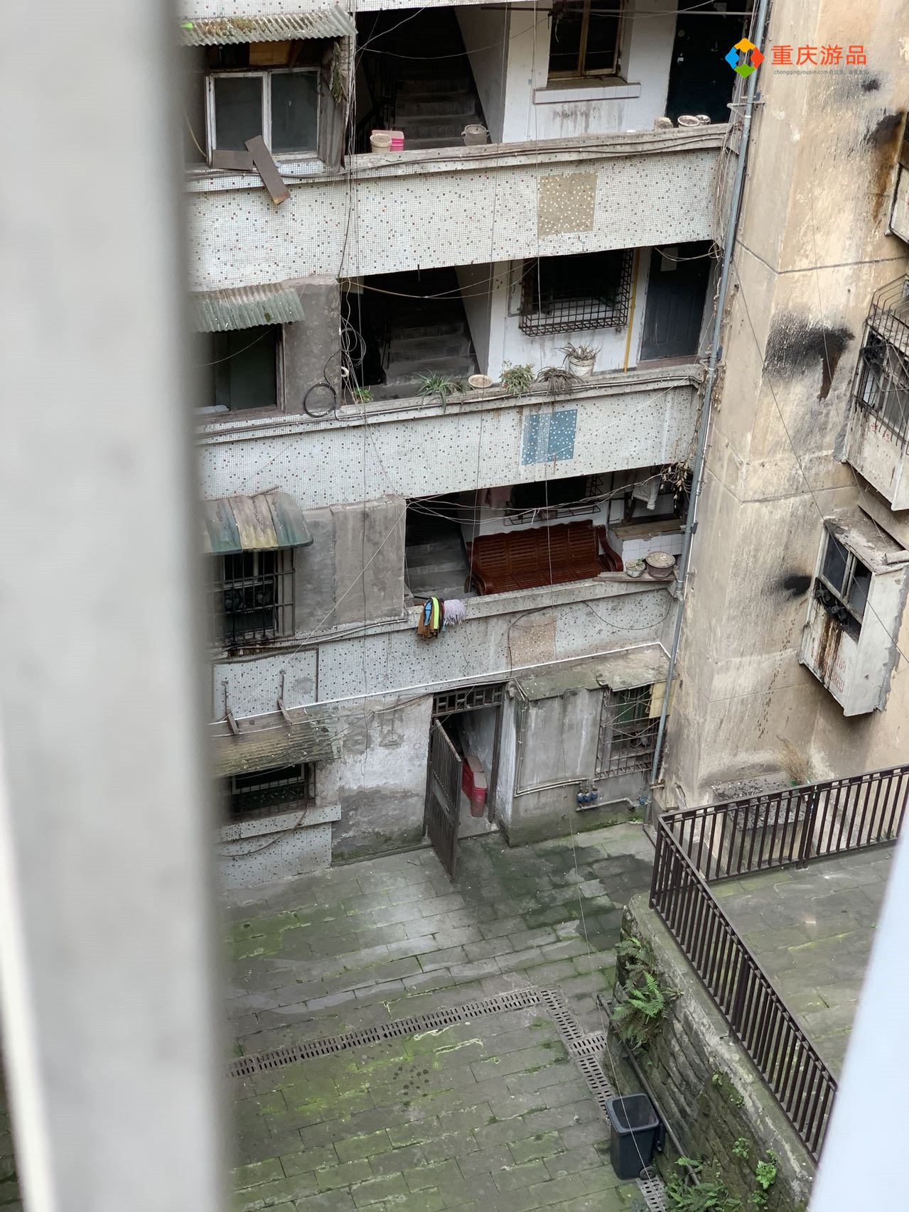 走过拐角,从栏杆缝隙中可以看到下层居民的生活环境,阴暗且潮湿,墙壁上长满了苔藓,窗台上摆放着几盆植物,因为常年吸收不到阳光而耷拉着。