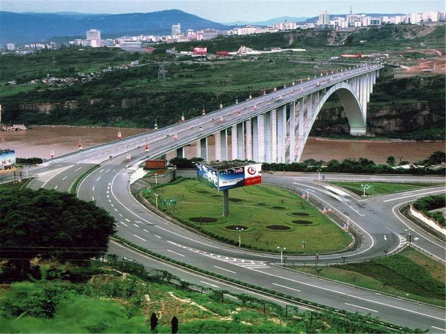 万州长江大桥是长江上第一座单孔跨江公路大桥,其全长814米,宽23米,桥拱净跨420米,造价为1.68亿元。