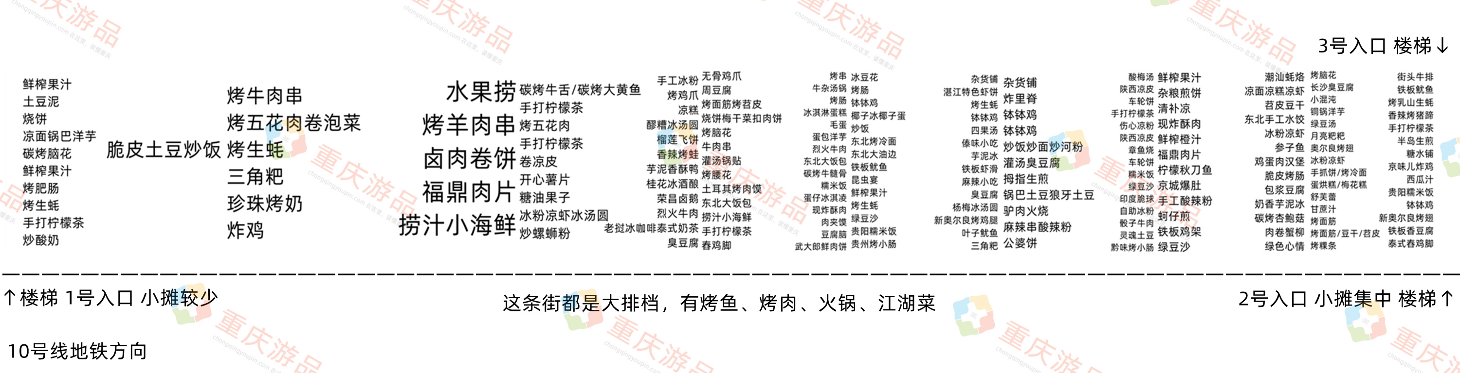 再加上许多摊主把网络直播放到了夜市,让民心佳园的名气越来越大,规模也逐渐扩张。因为交通方便,从重庆轨道交通3号线童家院子站一直到10号线的民心佳园站,几条街全部都是各种小吃摊,人来人往,络绎不绝。